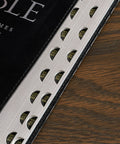 The glossy cover of the Black Faux Leather King James Version Deluxe Gift Bible with Thumb Index pays homage to an age-old version of the Bible with its beautiful poetic language.