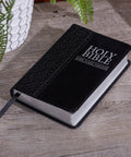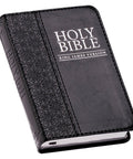 The unique pocket-size feature of the Black Faux Leather King James Version Pocket Bible means this Bible is the perfect size to fit in your pocket. This highly portable Bible makes a fantastic gift for a husband, son, grandfather, or father who likes to read their Bible from the printed page while on the go.