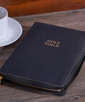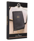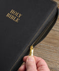 Black Faux Leather Large Print Thinline KJV Bible with Thumb Index and Zippered Closure