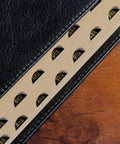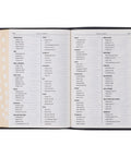 The cover is crafted from supple black full grain leather that is reinforced with topstitching around the edges and rounded corners. Elegantly gilt-edged pages and a satin ribbon marker lend a sense of sophistication to the Bible. The title is gold foiled and appears on the spine.