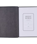 This Black Full Grain Leather Large Print Thinline King James Version Bible with Thumb Index is an excellent choice for people who value both convenience and comfort when choosing a Bible. This flexcover KJV Bible combines the portability of a thinline Bible with the benefits of a magnified type size. Just slip this slim, easy-to-read Bible into a backpack, briefcase, or purse and enjoy accessibility to it throughout your day.