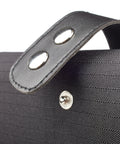 - Black faux leather strap with two silver metal snaps
