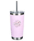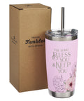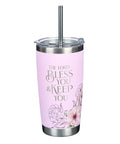 Bless You and Keep You Pink Floral Stainless Steel Travel Tumbler with Stainless Steel Straw - Numbers 6:24