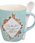 Bless You and Keep You Teal Ceramic Coffee Mug with Spoon - Numbers 6:24