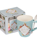 Add a spoonful of sugar to the beautiful Bless You and Keep You Teal Ceramic Coffee Mug with Spoon and let the sweetness of the blessing fill your heart, then store the spoon in the handle slot, ready for your next cup!