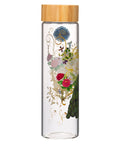 Adorned with a stunning blue peacock showcasing captivating teal and green feathers, this bottle is truly a work of art. The peacock is surrounded by large multi-colored florals and metallic gold flourishes, creating a secret garden atmosphere in which a gold key is discreetly hidden. The Biblical sentiment is framed in a metallic gold bracket and presented in elegant blue letters.