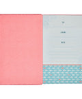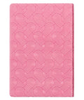 An enchanting pink-foiled heart design embellishes the covers of the blossom pink faux leather Bible, adding a shiny touch of delightful charm. The title, which is foiled in dazzling pink, adorns a luxurious blossom pink faux leather patch that is appliquéd to the front cover with pink topstitching. The version reference appears in pink foil at the bottom of the cover.
