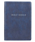 Understated elegance, a universally popular color, and a thin profile make the Blue Faux Leather Large Print Thinline King James Version Bible with Thumb Index a Bible that will always be in style.