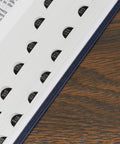 The lay-flat spine features the heat-debossed and silver-foiled title and a heat-debossed version reference accented by silver faux spine ribbing.