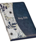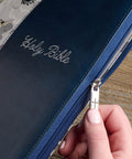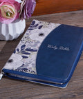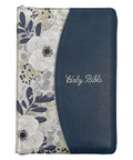 Blue Pearlized Floral Faux Leather Large Print Thinline K J V Bible with Zippered Closure and Thumb Index