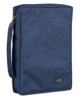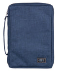 Protect your Bible with the Navy Blue Poly-Canvas Value Bible Cover with Ichthus Patch and ensure it stays well protected whether you're heading to church, attending a small group gathering, or doing Bible study at a coffee house.
