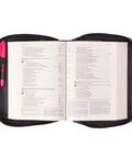 Inside the Bible case are two slip pockets to secure the covers of your Bible and two elastic pen loops to keep a pen or pencil handy.