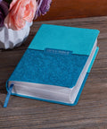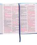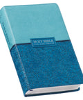 The unique cover of the Blue Two-tone Faux Leather Giant Print Standard-size King James Bible makes the statement that the carrier has an unparalleled sense of style.