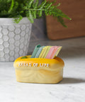Feed your appetite for Scripture with bite-sized morsels when you read through the Bread of Life Scripture Cards.The multi-colored Scripture cards are cleverly displayed in a polystone card holder shaped like a loaf of bread. The title is displayed in white block letters on the side of the loaf.