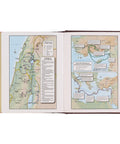 The title and version reference are repeated in gold foil on the spine. 2-inch wide margins with 1.6-inch lines make this note-taking Bible unique. These wide margins can be used for notes, bullet points, or even doodles. Several additional features are included to assist your study of God's Word. They include two satin ribbon markers, a thematic Scripture verse finder, a concordance, a one-year Bible reading plan, and 8 full-color maps. An Epistle Dedicatory letter is included to refresh your history of the KJV Bible.