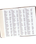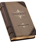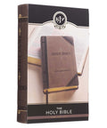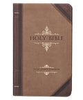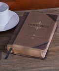Present the Walnut-Brown and Tan Faux Leather Giant Print King James Version Bible as your gift this Father's Day. With its vintage look and easy-to-read print and layout, this Bible is an ideal choice for any father who cherishes personal reflection time and values the enduring wisdom of the scriptures.