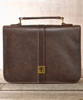 Simple and understated, the Brown Distressed Faux Leather Classic Bible Cover with Cross Badge will appeal to the traditional man in your family.
