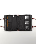 The two-way zipper pulls are constructed from the same croc-embossed faux leather as the cover.The inside of the case features 3 clear pockets that can be used for photos, a zippered mesh pocket, and a pen loop. The cover opens up to lay completely flat.