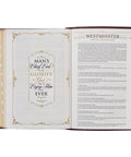 Delve into the storied legacy of the King James Version with an entire section dedicated to its rich tradition, text, and translation. Prepare to embark on an enlightening journey through the Bible, as each book is accompanied by insightful introductions. At the conclusion of every chapter, you'll discover heartfelt personal or family devotions, forging a deeper connection to the divine Word. Unravel the complexities of the text with the aid of thousands of explanatory study notes, shedding light on both the content and archaic language. Engage with 50 profound essays exploring key teachings of the Bible. Unlock a wealth of knowledge through a comprehensive concordance and vivid full-color maps. This Study Bible also provides a captivating section on living a Christian life, encompassing 37 compelling essays. Additionally, gain a sweeping perspective on 20 centuries of church history through a concise historical overview. Delve into the profound wisdom of ancient creeds, confessions, and catechisms, including the Apostles' Creed, Nicene Creed, Athanasian Creed, Belgic Confessions, Heidelberg Catechism, Canons of Dort, Westminster Confessions, Westminster Superior Catechism, and the Westminster Larger Catechism.