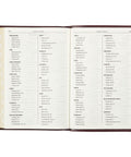 The lay-flat spine features the heat-debossed and gold-foiled title, a heat-debossed version reference surrounded by a filigree frame, and elevated decorative spine ribbing accented by gold-foiled bands.