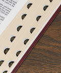 The understated elegance of the Burgundy Faux Leather Large Print Thinline King James Version Bible with Thumb Index will never go out of fashion, and the thinline profile will fit comfortably in your hand.