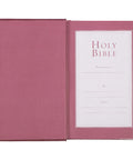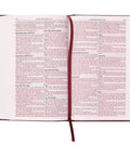 The Smyth-sewn binding adds durability to an already sturdy cover and allows the Bible to open flat without damaging the spine. A burgundy satin ribbon marker is included to mark your page, and a one-year Bible reading plan is included to keep you on track when you use this as a personal Bible.