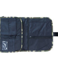 With the growing popularity of camo, our Tri-Fold Camouflage Bible / Book Organizer is sure to be a top choice! Perfect for class, Bible study group or the commute, this handy poly-canvas organizer provides well-thought-out storage features. On the front, you'll find a velcro tabbed pouch to accommodate your phone, and another with a faux leather tabbed zipper that is large enough for a wallet. A faux leather strap with velcro closure pulls the organizer open to reveal another velcro tabbed pouch, 2 pen compartments, 4 card slots - including one with an ID window, a slip pocket large enough to fit your iPad and many styles of notebooks and journals, a second slip pocket and a zipped mesh pocket. Another zip with a faux leather tabbed zipper, and you have a compartment to envelop your book or Bible and another couple of pens. A suitcase style carry handle and an Armor of God patch complete the look.