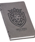 The striking Charcoal Faux Leather Gift Edition King James Version Bible features a captivating lion face design. This affordable Bible combines a modern aesthetic with the revered Classic 1769 King James text. It makes for a remarkable and memorable gift, ideal for commemorating achievements or important milestones, that will leave an abiding impression on the recipient.
