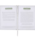 Each page is printed in two colors, beautifully framed, and accented with floral corner embellishments printed in taupe. The pages are gilt-edged, and a ribbon marker is included to mark your page.