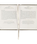 The interior pages are printed in gray and gold, and the page edges are foiled in gold. A silver ribbon marker is included to mark your page, and a presentation page lets you personalize the devotional.