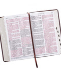 The Dark Brown Faux Leather Giant Print Standard-size King James Version Bible with Thumb Index will become a keepsake Bible that is handed down from generation to generation, just like God's faithfulness.