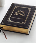This magnificent, heirloom-quality Dark Brown Faux Leather Hardcover King James Version Family Bible will become a beloved keepsake to be passed down from generation to generation. The beloved 1769 Classic King James text is printed in deep black on heavyweight paper in a large font.