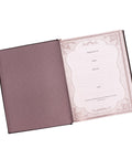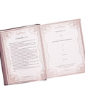 Cover design features include a detailed heat-debossed decorative border with gold-foiled frames, corner accents on the front and back, and a gold-foiled title. The spine features three notched gold-foiled frames highlighting the title, version reference, and an elaborate gold-foiled filigree design. Gilt-edged pages protect the page edges and 2 attached ribbon page markers, one dark brown and one medium brown, are included to mark your page.