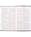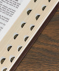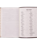 This Dark Brown Faux Leather Large Print Thinline King James Version Bible with Thumb Index is designed to help you study God's Word in detail. The Thinline format has a 10-point type size and a thin silhouette making it easy to place in a bag or backpack.