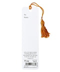 A gold tassel that coordinates with the orange flower is knotted at the top of the bookmark. On the back is space to address the bookmarks, and here you will also find a Scripture verse.