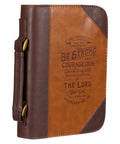 Do Not Be Afraid Two-tone Toffee and Chocolate Brown Faux Leather Bible Cover – Joshua 1:9