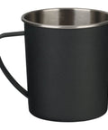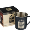 The sturdy yet lightweight camps-style mug is single-walled, and its large handle makes it easy to clip onto a belt or backpack—perfect for camping or hiking. It holds 17 fluid ounces, enough to quench a bear's thirst! The cup will get hot when you fill it with warm liquid so take care. We recommend handwashing the cup with warm soapy water. The Do Not Be Shaken Black Camp-style Stainless Steel Mug comes packaged in a gift box.