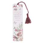 A beautiful floral design in muted pinks and greens featuring butterflies, feminine lettering, and a complementing tassel make this a perfect gift for any woman. Add a bookmark to an encouraging note or book for a friend or colleague or family member facing a struggle and show how much you care.