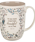 Everything Beautiful Cream Floral Ceramic Coffee Mug - Ecclesiastes 3:11
