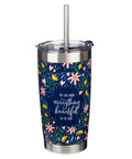 Everything Beautiful Stainless Steel Travel Mug with Reusable Stainless Steel Straw - Ecclesiastes 3:11
