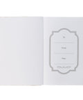 A gorgeous taupe rose design stretches across the front cover of the white faux leather cover. At the heart of the design, a white circular frame edged in gold foil with the Scripture reference cleverly incorporated in gold foil, holds the sentiment.
