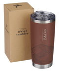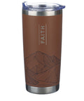 The Faith Brown Stainless Steel Travel Tumbler is one of the many items in the Faith Mountain Summit Collection. This collection also features a Bible cover, spiral journal, stainless steel water bottle, zippered journal, puzzle, gift bag, bookmark, ceramic mug, pen, and a Box of Blessings®