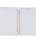 A sturdy gold metal wire-o binding allows the journal to lie flat for easy writing. Inside, 192 lined pages, each topped with a small lavender floral motif, offer plenty of room for notes, prayers, and ideas . There is also a Scripture verse on each page for added inspiration. The sturdy pages hold up well to ink, so you can write confidently without worrying about show-through.
