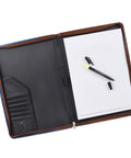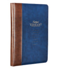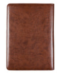 This richly detailed zippered portfolios makes the perfect gift for a business person, teacher or pastor. The two-tone navy and brown style features a debossed tile design accented with gold foil and Scripture from 2 Chronicles 15:7 Be strong and do not give up, for your work will be rewarded. The portfolio accommodates a standard 8 1/4 x 11 1/3 legal pad (included). Inside the padded and lined folder, you will find a pen loop (pen included), a slip slot, slots for 5 cards and an ID window. The portfolio is constructed of quality man-made material imported from Italy, with the look and feel of real leather.