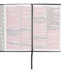 Elegance meets lasting style with the timeless allure of the Floral Black Faux Leather Large Print Thinline King James Version Bible with Thumb Index. This Thinline Bible's classic design will never go out of fashion. The Thinline profile ensures a comfortable grip that allows you to easily hold the Bible—perfect for those with arthritis or weakened strength.