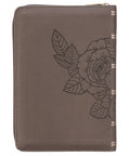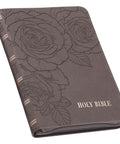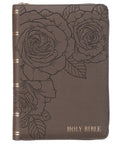 The Floral Dusty Taupe Faux Leather Large Print Compact King James Version Bible is perfectly suited for a woman who appreciates a touch of elegance. With its large print text, this compact Bible is easy on the eyes.
