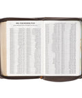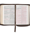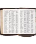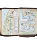 This Bible has many features that make it an excellent choice for study. The Smyth-sewn construction guarantees that the spine opens completely flat without compromising the book's integrity. Its double-column layout and 10-point type ensure a comfortable reading experience. The Bible has a thematic Scripture verse finder, a concordance, a one-year reading plan, and eight full-color maps, each helping to provide a deeper understanding of the text. Notably, Christ's words are printed in red to highlight their importance.