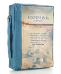 The Footprints Poly-Canvas Value Bible Cover will be a perpetual reminder of God's unwavering care while also providing a stylish and practical way to safeguard your Bible. Know someone who loves the Footprints in the Sand poem? Then it's a given—this Bible cover would make an exceptionally thoughtful gift.