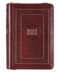 Framed Burgundy Faux Leather Large Print Compact King James Version Bible with Zippered Closure