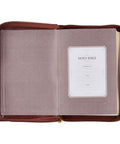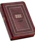With its large print size, the Framed Burgundy Faux Leather Large Print Compact King James Version Bible with Zippered Closure is a small but readable option for always keeping your Bible close and reading it on the go.